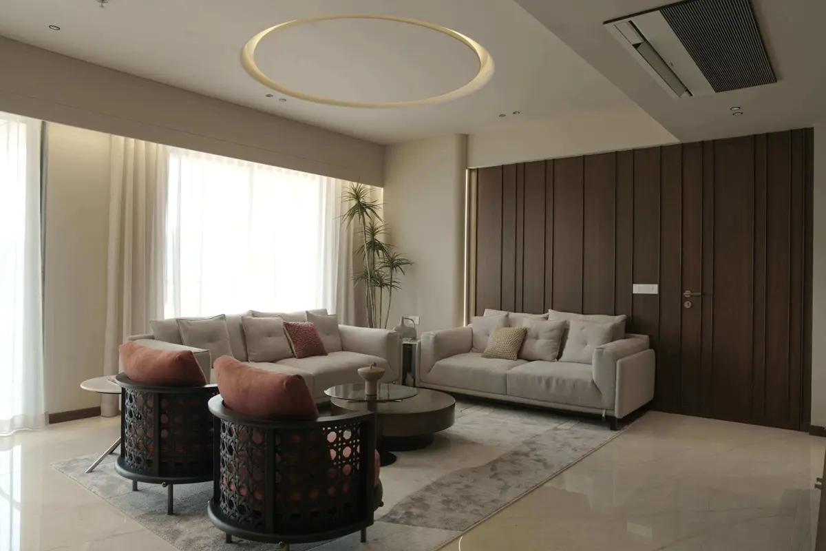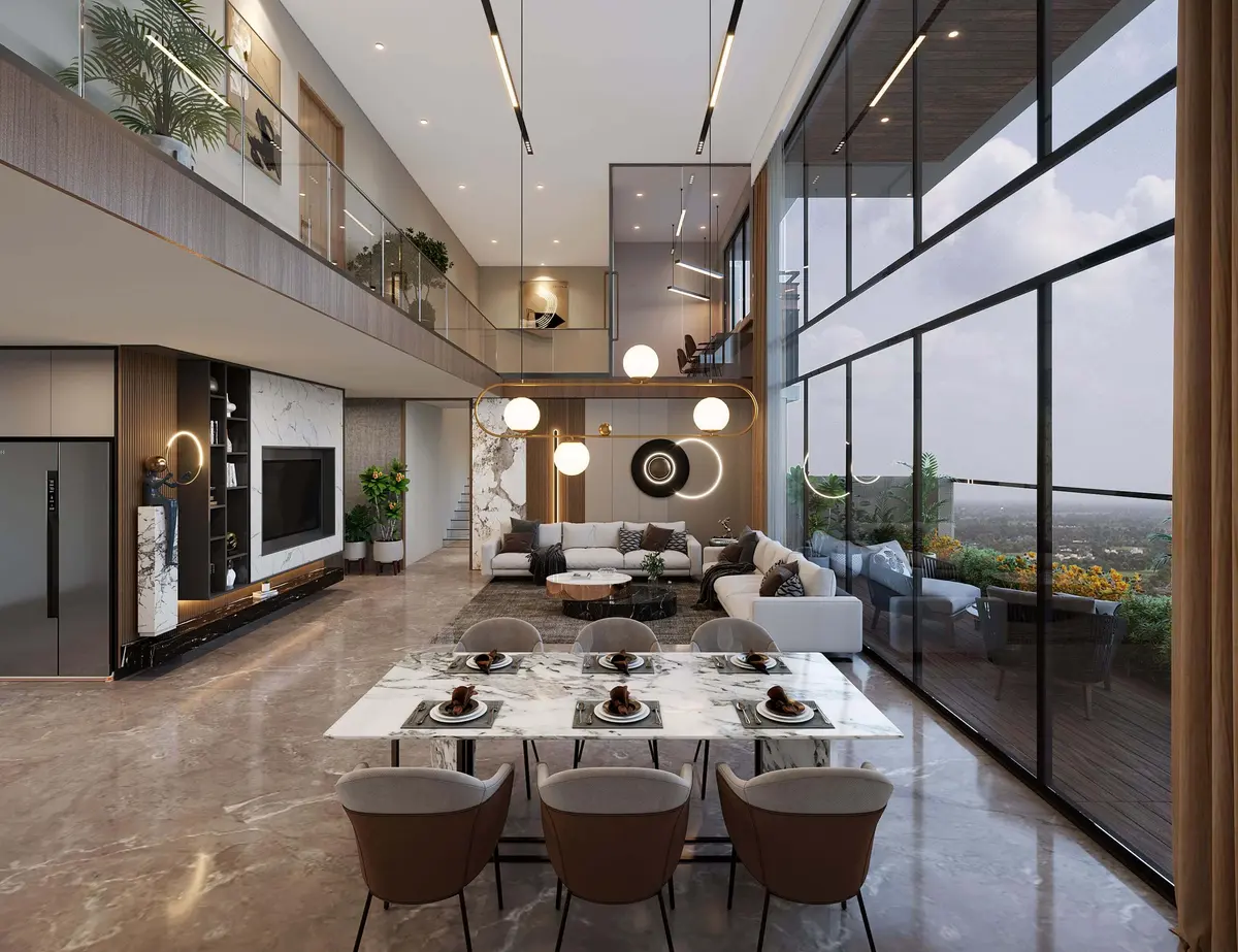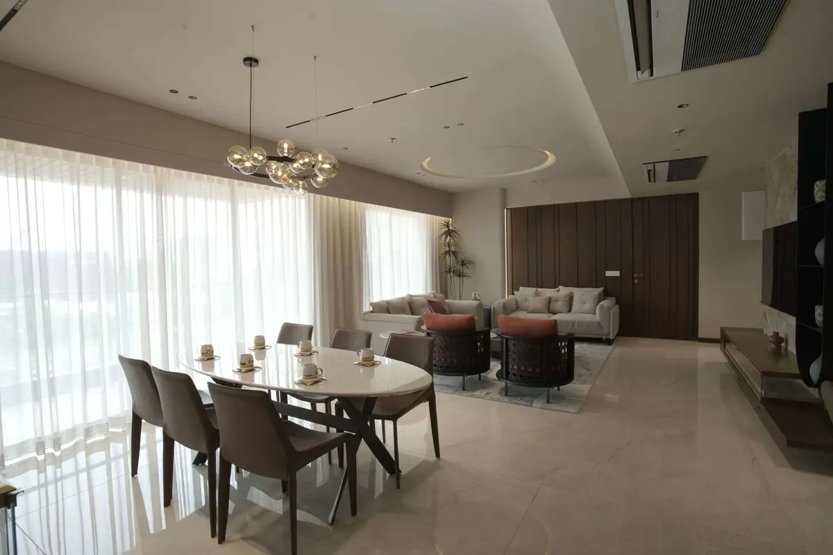 Premium 4BHK high-rise apartment interior designed for modern luxury living with elegant aesthetics, smart space planning, and turnkey execution.