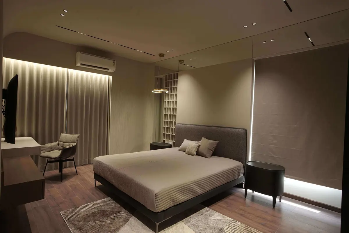 Bedrooms were personalized to reflect calmness and comfort, with custom wardrobes, upholstered headboard walls, soft lighting layers, and elegant material palettes. Each room offers a private retreat experience while maintaining overall design harmony.